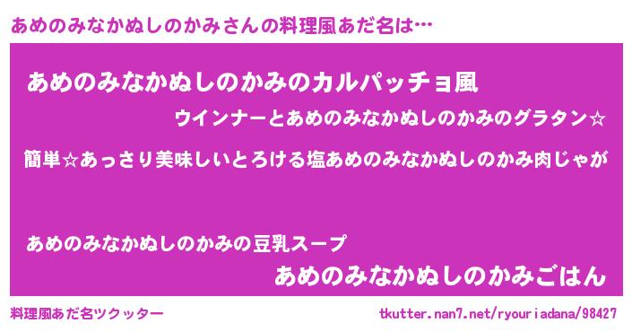 | ヘコむあだ名 | 『あめのみなかぬしのかみ(震え声)』 |