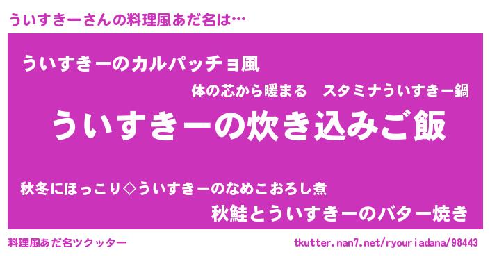 | 意味不明あだ名 | 『住所不定無職ういすきー(89歳)』 |