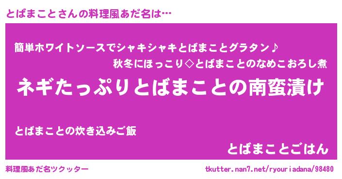 | ポケモン風あだ名 | 『トバチュウ』『ヒトバマコト』 |