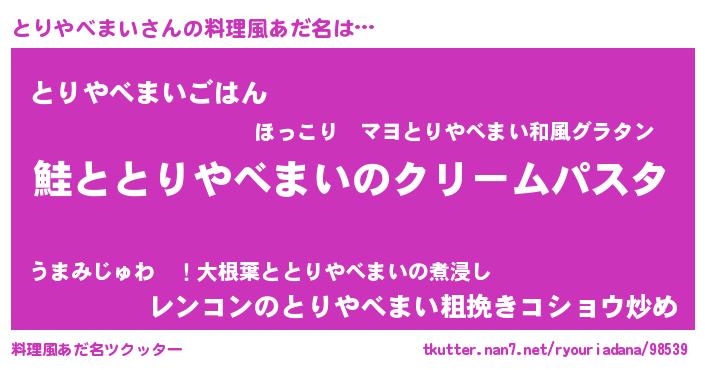| 肩書あだ名 | 『とりやべまい教授』『とりやべまい大佐』 |