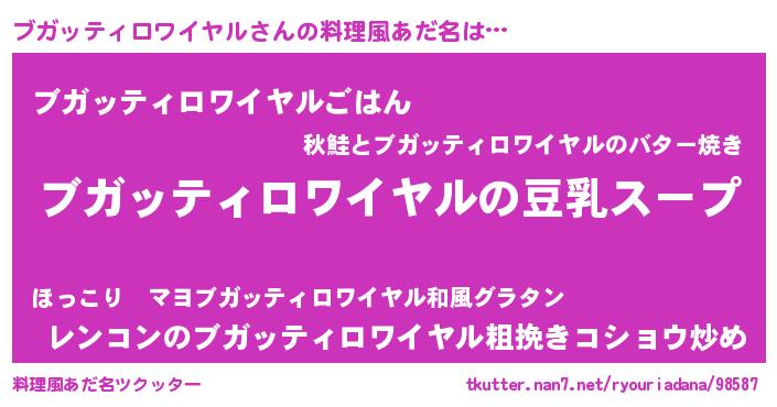 | 意味不明あだ名 | 『とにかく怪しいブガッティロワイヤル』 |