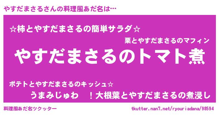 | 男性向けラノベタイトル風あだ名 | 『おまえをオタクにしてやるから、俺をやすだまさるにしてくれ! 』 |