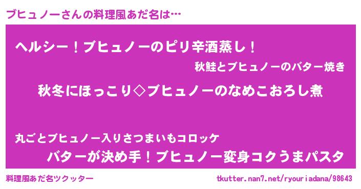 | ヘコむあだ名 | 『ブヒュノー(爆)』『ブヒぷりん』 |