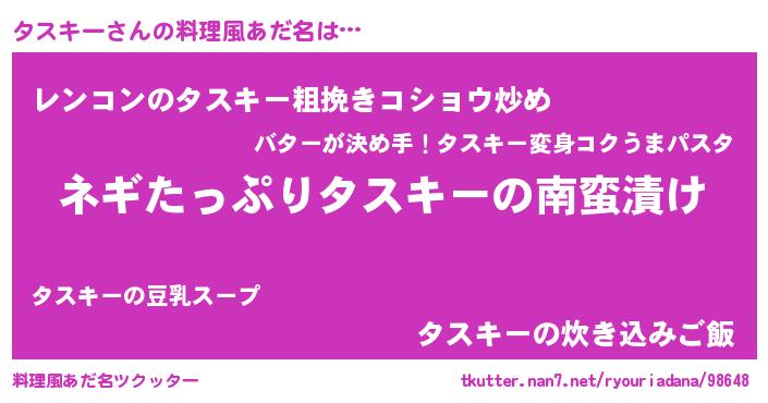 | 男性向けラノベタイトル風あだ名 | 『タスキーアートオンライン』 |
