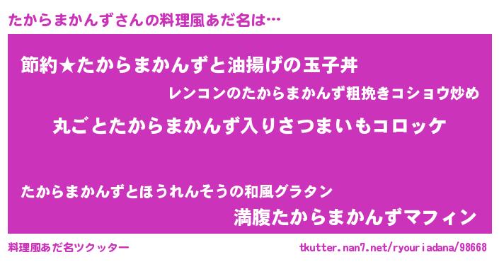 | 意味不明あだ名 | 『住所不定無職たからまかんず(85歳)』 |