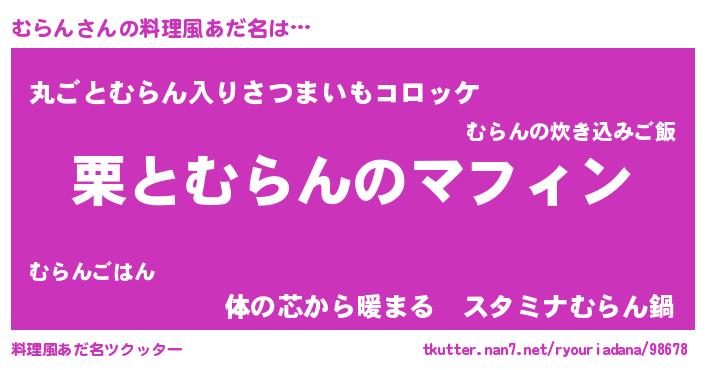 | ヒーロー風カッコイイあだ名 | 『仮面ムラダー』『ウルトラむらんマン』 |
