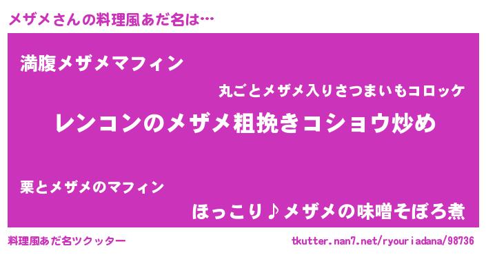 | 意味不明あだ名 | 『自称メザメ』『永久保存メザメ』 |