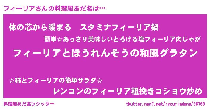 | 意味不明あだ名 | 『ニラ科フィーリア属』『自称フィーリア』 |