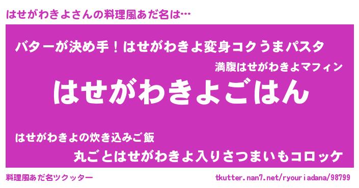 | ヒーロー風カッコイイあだ名 | 『正義の使者はせがわきよ』 |