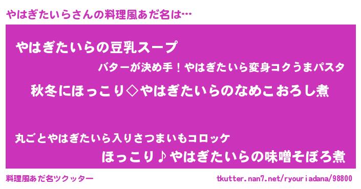 | 男性向けラノベタイトル風あだ名 | 『やはぎたいらに滅ぼされるだけの簡単なお仕事です』 |