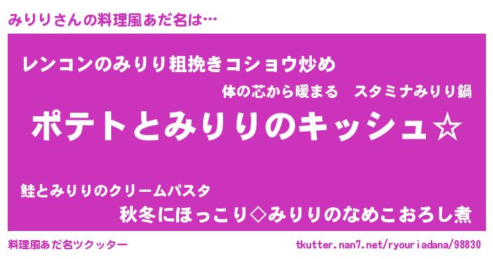 | 胡散臭い通販商品みたいなあだ名 | 『伝統あるサプリメント…その名も「みりり」』 |