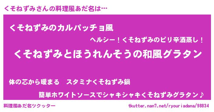 | 女子向けラノベタイトル風あだ名 | 『くそねずみの玉の輿計画!』 |