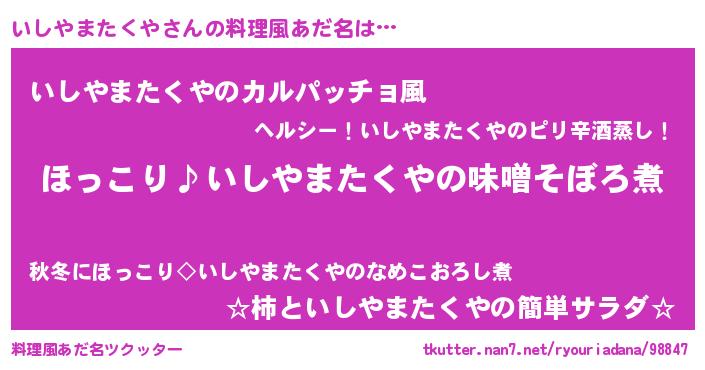 | 胡散臭い通販商品みたいなあだ名 | 『必ず成功する霊験あらたかなお札…その名も「いしやまたくや」』 |
