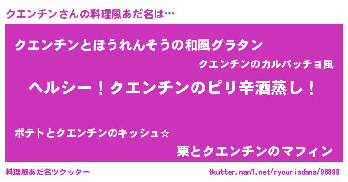 | 胡散臭い通販商品みたいなあだ名 | 『テレビで話題のアガリクス…その名も「クエンチン」』 |