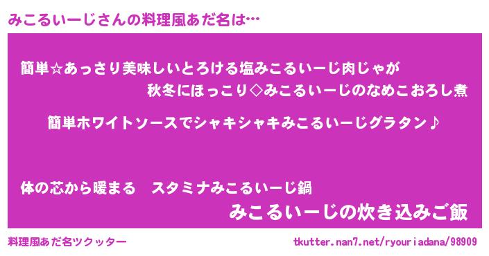 | 意味不明あだ名 | 『とにかく怪しいみこるいーじ』 |