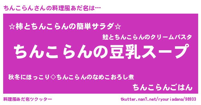 | 胡散臭い通販商品みたいなあだ名 | 『信頼と実績のサプリメント…その名も「ちんこらん」』 |