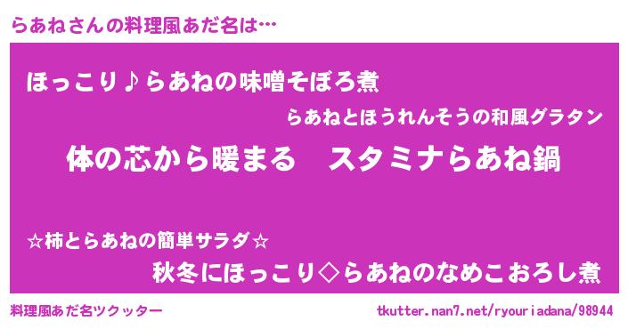 | 肩書あだ名 | 『らあね国家主席』『らあね御曹司』 |