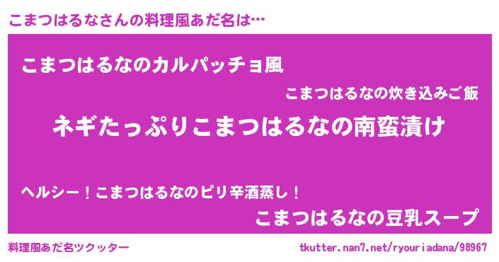 | 恥ずかしいあだ名 | 『プリティーこまつはるな』『こまちん』 |