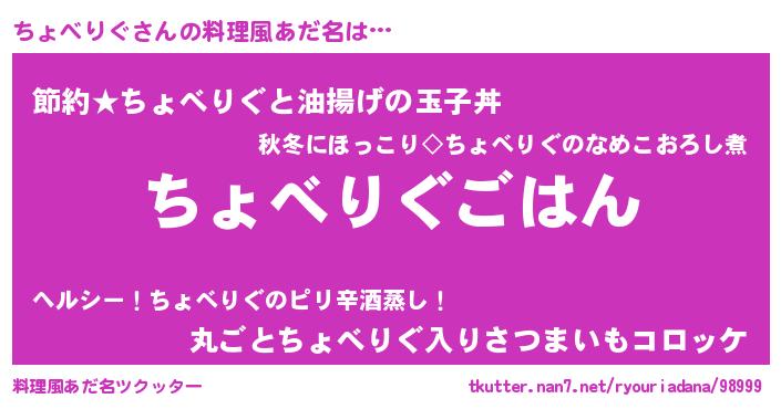| 男性向けラノベタイトル風あだ名 | 『チョベリグスレイヤー』 |