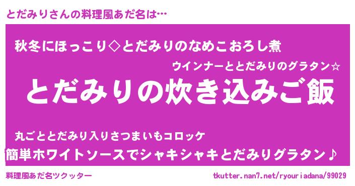 | ヘコむあだ名 | 『とだっ子』『なまこ酢』『とだにー』 |