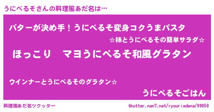 | 意味不明あだ名 | 『住所不定無職うにべるそ(65歳)』 |