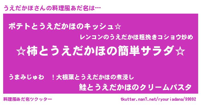 | ヒーロー風カッコイイあだ名 | 『黄金騎士ウエ』『愛の使者うえだかほ』 |