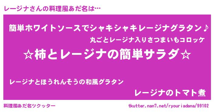 | 男性向けラノベタイトル風あだ名 | 『緋弾のレージナ』『魔弾の王とレージナ』 |