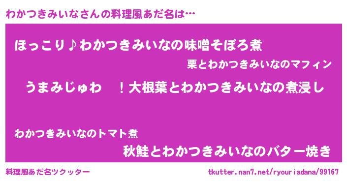 | 欧米人風あだ名 | 『わかつきみいなクリステル』 |