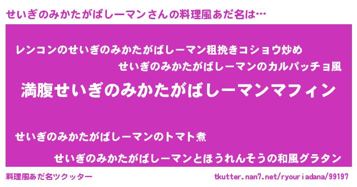 | 意味不明あだ名 | 『永久保存せいぎのみかたがばしーマン』 |