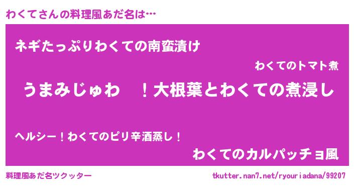 | 女子向けラノベタイトル風あだ名 | 『わくての婚約者』『闇のわくて』 |