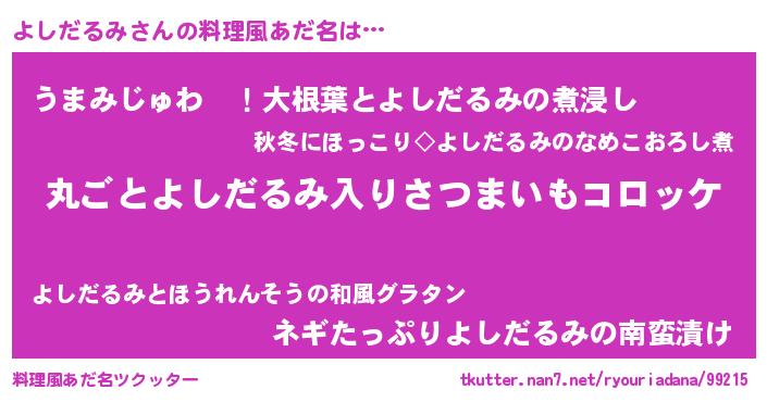 | 意味不明あだ名 | 『住所不定無職よしだるみ(81歳)』 |