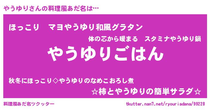 | ヒーロー風カッコイイあだ名 | 『仮面ヤウダー』『ウルトラやうゆりマン』 |