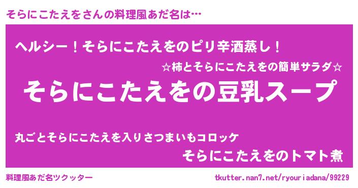 | ポケモン風あだ名 | 『ヒソラニコタエヲ』『ソラセウス』 |