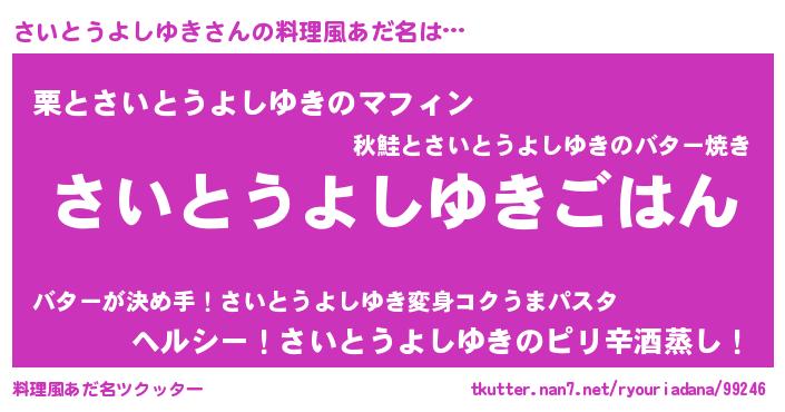 | ヘコむあだ名 | 『さいとうよしゆき(爆)』『さいっちょ』 |