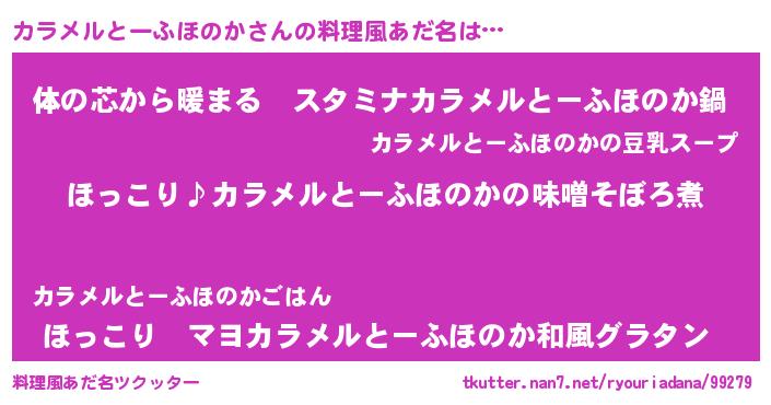 | 男性向けラノベタイトル風あだ名 | 『カラメルとーふほのかの憂鬱』 |