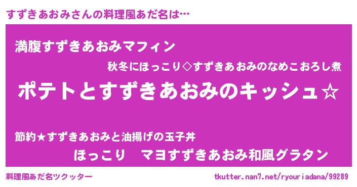 | ポケモン風あだ名 | 『ヒスズキアオミ』『ゼニスズ』 |