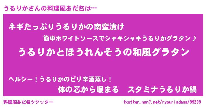 | 恥ずかしいあだ名 | 『プリティーうるりか』『うるっちょ』 |