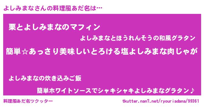| ヘコむあだ名 | 『よしみまな(爆)』『よしっちょ』 |