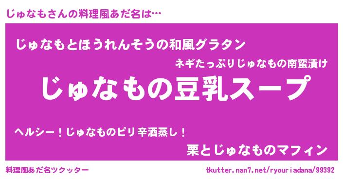 | 女子向けラノベタイトル風あだ名 | 『じゅなもは平凡を望む』 |