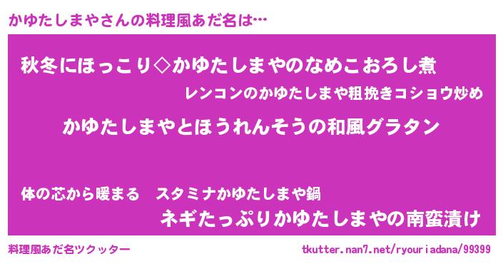 | 男性向けラノベタイトル風あだ名 | 『転生したらかゆたしまやだった件』 |