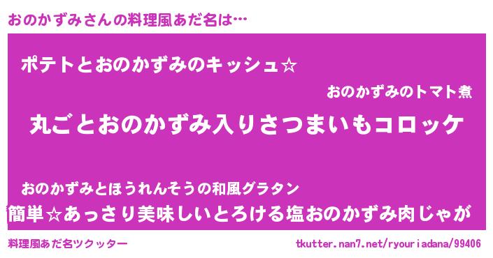 | 意味不明あだ名 | 『住所不定無職おのかずみ(71歳)』 |