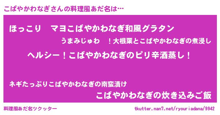 | 男性向けラノベタイトル風あだ名 | 『Re:こばやかわなぎから始める異世界生活』 |