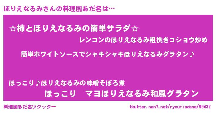 | 男性向けラノベタイトル風あだ名 | 『ほりえなるみの嫁は女の子じゃないと思った?』 |