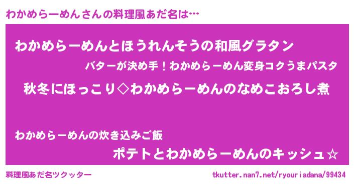 | 男性向けラノベタイトル風あだ名 | 『わかめらーめんに滅ぼされるだけの簡単なお仕事です』 |