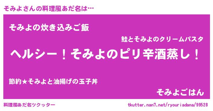 | 男性向けラノベタイトル風あだ名 | 『Re:そみよから始める異世界生活』 |