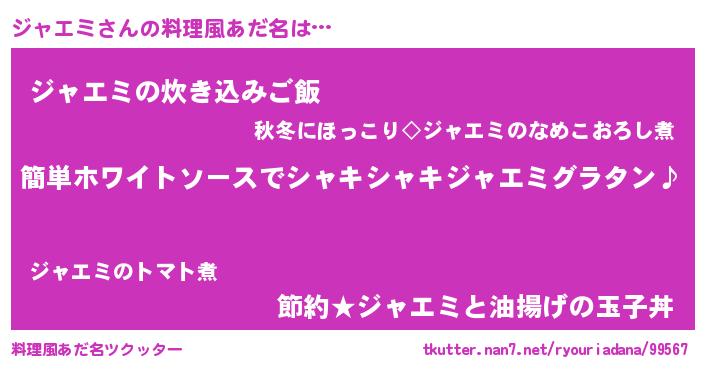 | 女子向けラノベタイトル風あだ名 | 『ジャエミ様がみてる』 |