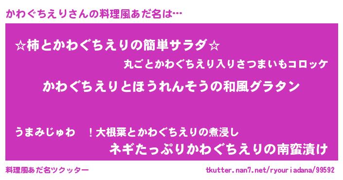 | 女子向けラノベタイトル風あだ名 | 『かわぐちえりの玉の輿計画!』 |