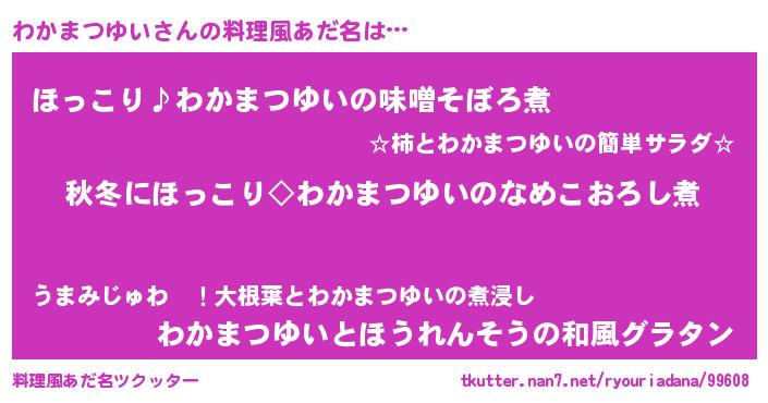 | 恥ずかしいあだ名 | 『プリティーわかまつゆい』『わかっちょ』 |