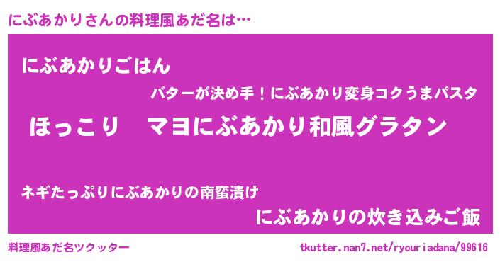 | 意味不明あだ名 | 『住所不定無職にぶあかり(41歳)』 |