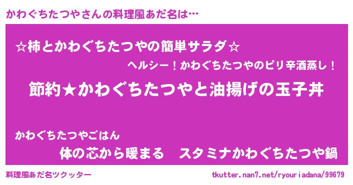 | 女子向けラノベタイトル風あだ名 | 『かわぐちたつや姫と円卓の騎士』 |